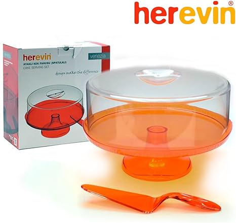 Kuchenform Etagere Mit Fuss Und Glasglocke Mit Spachtel Herevin Farbe Orange Geback Kuchen Obst Dessert Amazon De Kuche Haushalt