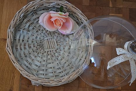 Chic Antique Korb Tablett Etagere Mit Glasglocke Glas Shabby Vintage Amazon De Kuche Haushalt